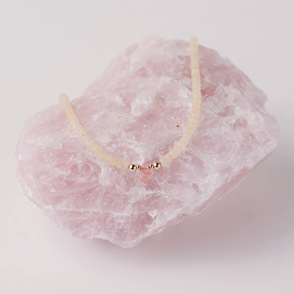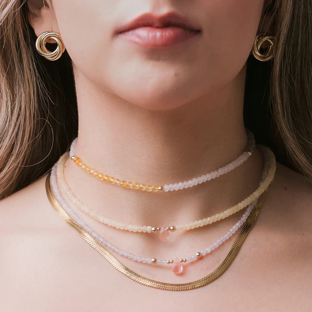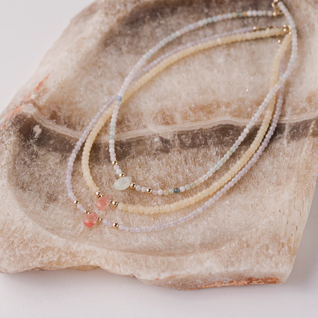 14k gold blend beads and natural yellow jade & cherry quartz.
