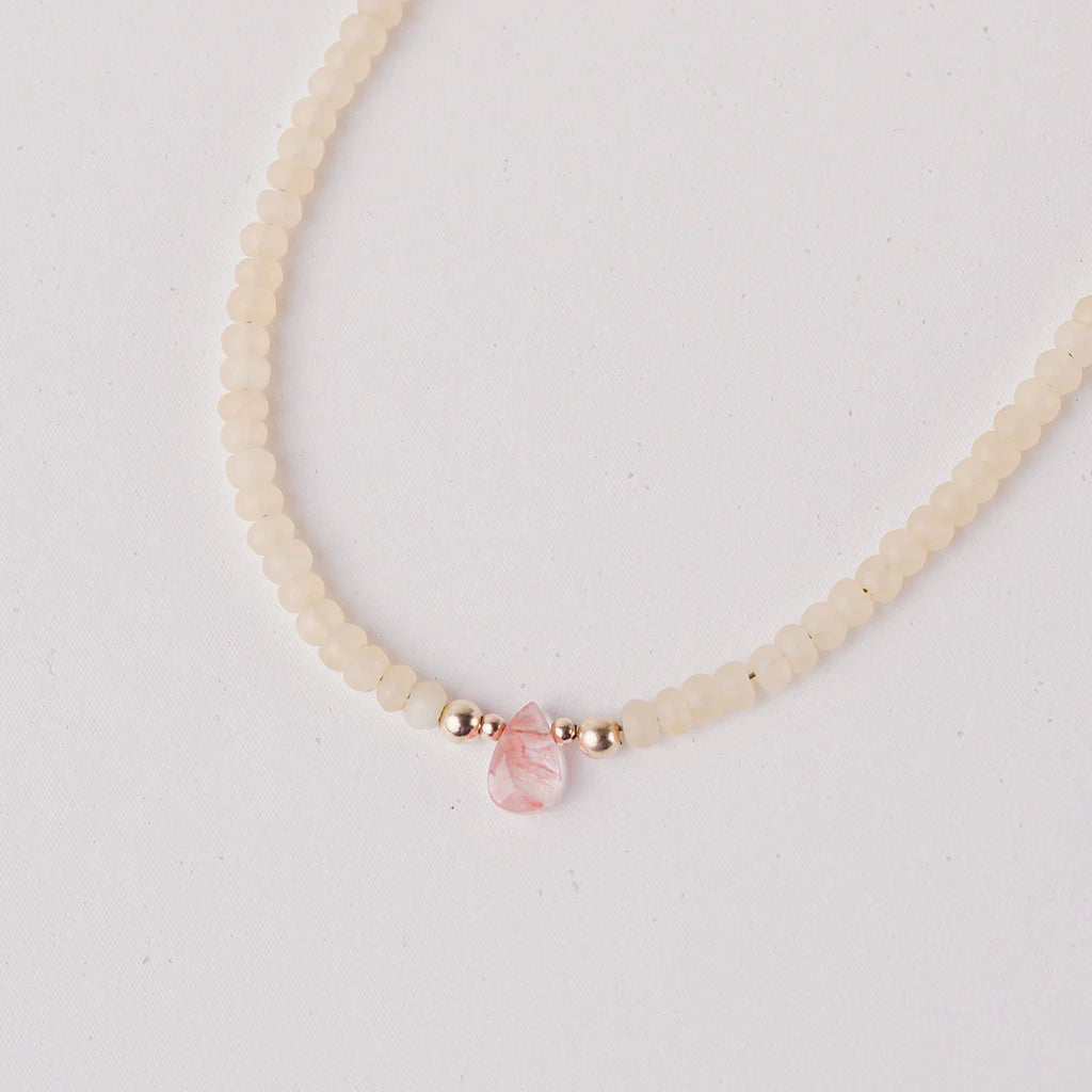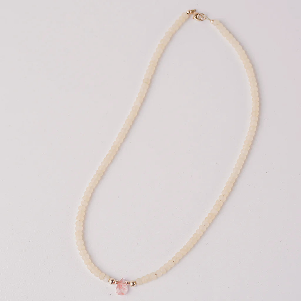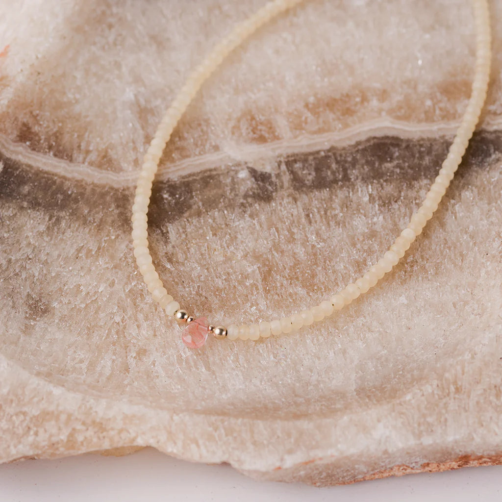14k gold blend beads and natural yellow jade & cherry quartz.